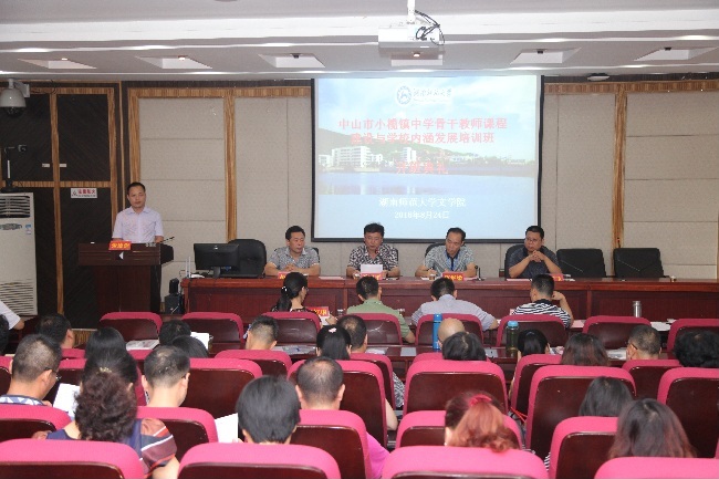 2016年8月24日上午8时整,来自中山市小榄镇五个学校的59名老师,在太阳成tyc33455cc216学术报告厅举行中山市小榄镇中学骨干教师课程建设与学校内涵发展培训班开班典礼。中山市小榄镇一中副校长陈华梁、菊中副校长陈清茂、侨中教导主任宗健、二中办公室主任陶烨、永中德肓主任梁红华,太阳成集团继续学院院长、博士生导师马卫平教授,副院长吴跃飞,太阳成tyc33455cc副院长彭万福出席开班典礼。典礼由太阳成tyc33455cc成教办主任张德强主持。