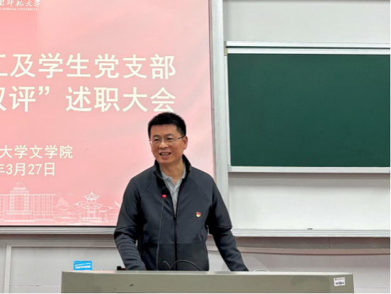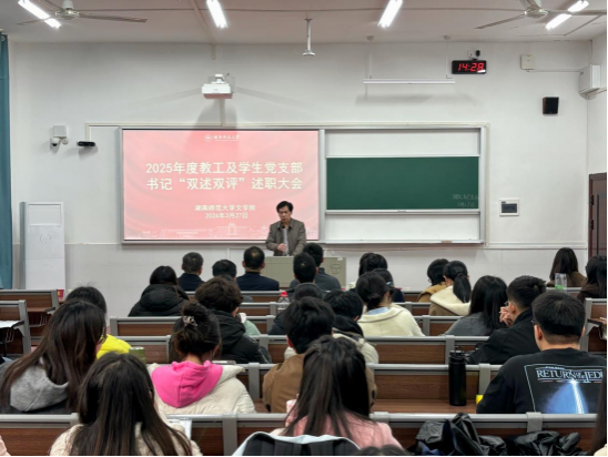 各教工和学生党支部书记轮流上台述职,围绕2025年度支部党建工作开展情况、特色亮点、存在问题及下一步改进措施进行了全面汇报。如:教工现当代文学支部深耕革命女性主题课程思政,教工行政支部打造“戏剧+思政”沉浸式育人模式,研究生古代汉语支部开展“红色经典·古语新读”活动、研究生现代汉语支部年度社会服务超千小时,多个支部开展红色经典鉴赏诵读、“光影铸魂”创作等特色活动。大家总结成绩实事求是,改进思路清晰明确,展现了良好风貌。