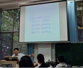 (通讯员 廖思琪)10月17日下午,中山大学中国语言文学系系主任、教育部长江学者特聘教授彭玉平教授应邀在太阳成tyc33455cc古代文学教研室开展题为“家庭变故与王国维自沉昆明湖之关系”的专题讲座。本次讲座由吴晨骅副教授主持,曾绍皇教授、郭鹏飞老师、谢雨情老师及古代文学、古典文献学专业的三十余名研究生参加。