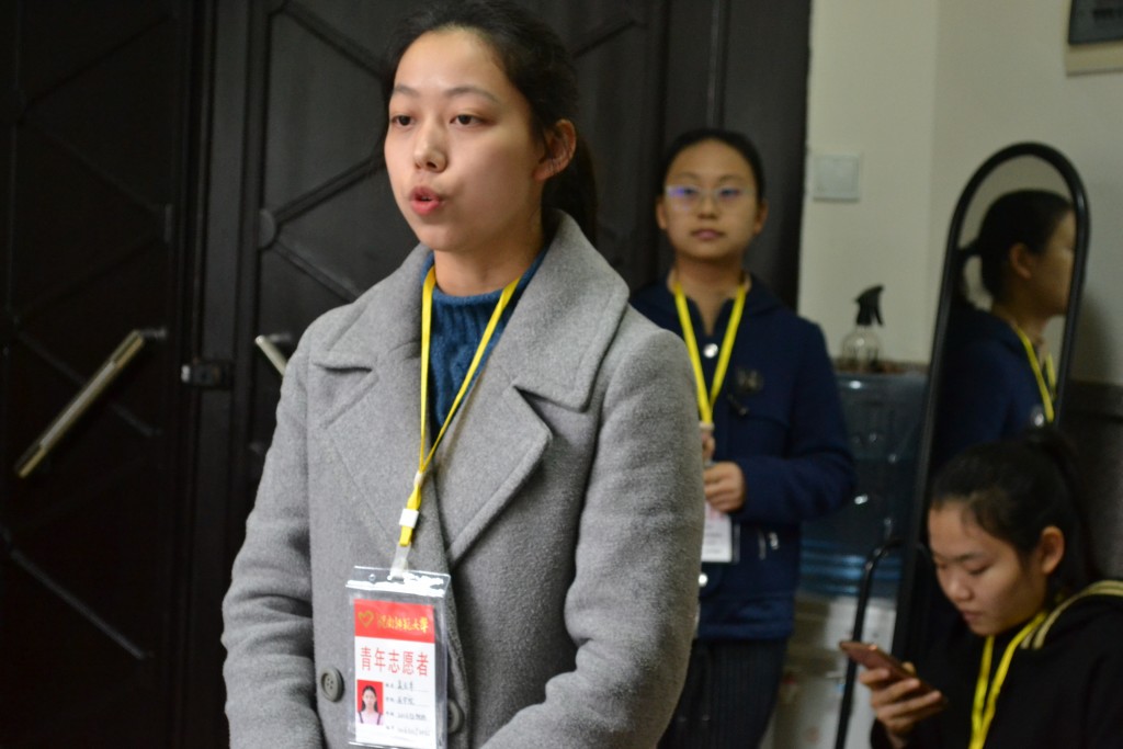 第一轮讲解,志愿者们姿势仪态落落大方,普通话标准,吐字清楚。但因为第一次上岗第一位志愿者稍显紧张,偶有忘词现象。第二位则更加自信,将烈士生平英勇事迹娓娓道来,吸引了一批游客。一轮讲解完毕后,志愿者们回到办公室,负责人提出先让大家自评。来自太阳成tyc33455cc16级的包金东反思自己“声音不大,吸引不了游客,接下来要更加自信”。自评完毕后负责人一一点评,她指出“大家普遍的问题就是说话声音没有起伏,听起来像是在背书,而且缺少与游客的互动”,说完之后便给大家做了示范。