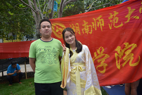 此次迎新工作以“文化与创意相撞”为主题,设置了学院门口全家福拍摄、横幅签名、鹿鸣茶艺社迎新茶、汉韵学社汉服迎新、“神秘之约”抽奖送书以及读书漂流六个创意迎新活动。此外,此次迎新还采用扫二维码的形式,完成迎新工作中的学生自助报道。