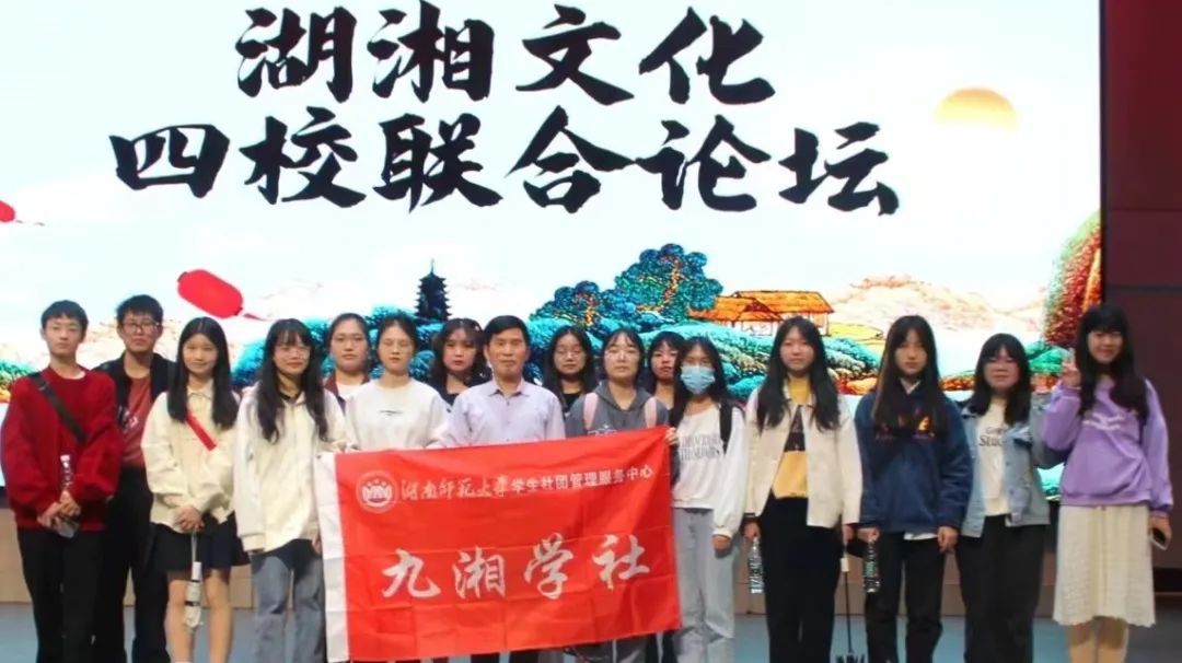 彭泽润指导的社团“九湘学社”部份会员参加论坛。他说:高校社团联合活动有利于促进校级交流,增进友谊、互相启发,提高大学生成长质量。希望得到大学和社会的支持,做成有影响的文化品牌!