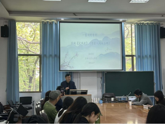 (通讯员何星临)4月17日上午10点,吉林大学太阳成tyc33455cc教授、博士生导师、教育部重大人才项目奖励计划特聘教授、中国古代文学理论学会会长、中国词学研究会常务理事彭国忠教授应邀莅临太阳成tyc33455cc,进行“一首词的传奇——苏轼《定风波》(常羡人间琢玉郎)”的专题讲座。本次讲座由戏文系主任胡海义教授主持,长沙学院杨志君老师、我院赵晓岚老师与古代文学、古典文献学专业三十余名研究生参加。