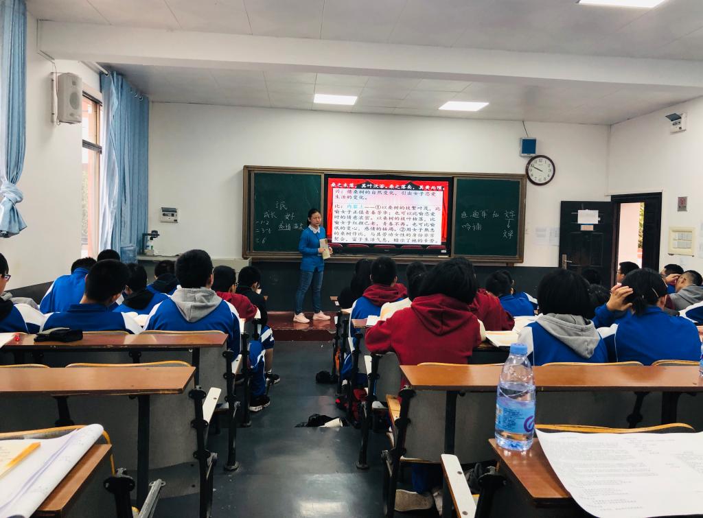 队长朱旺波主讲《归园田居(其一)》,他扣紧“归”字,品读全诗,通过诗眼分析诗歌内容,又层层深入,引导学生理解陶渊明身上的儒道精神。副队长高瑞卿主讲《诗经·氓》。她教态亲和自然,以精心设计的问题引导学生深入思考,课程结构完整,教学效果良好。两堂课结束后,观课师生以热烈的掌声表达了他们对汇报课的认可。